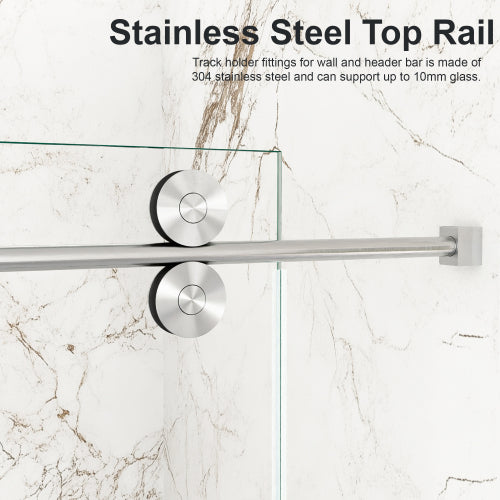 56"-60"W x 72"H Frameless Single Sliding Shower Door – 5/16" (8mm) Clear Tempered Glass, Bypass Design with Brushed Nickel Finish