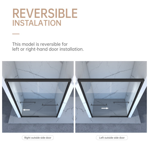 - 【Humanized Design】This glass shower door 60" width and 70" high, the width can be adjusted from 56" to 60" by cutting guide. Please Note: All measurements must be taken after walls are finished (tile, back walls, etc.)