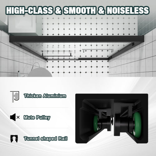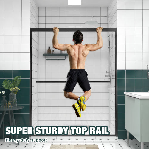 56-60"x74" Aluminum Frame Double Sliding Shower Door,Bypass Bathroom Sliding Door with Premium 1/4" (6mm) Clear Tempered Glass, Black Hardware Sliding Glass Shower Enclosure,Matte Black Finished