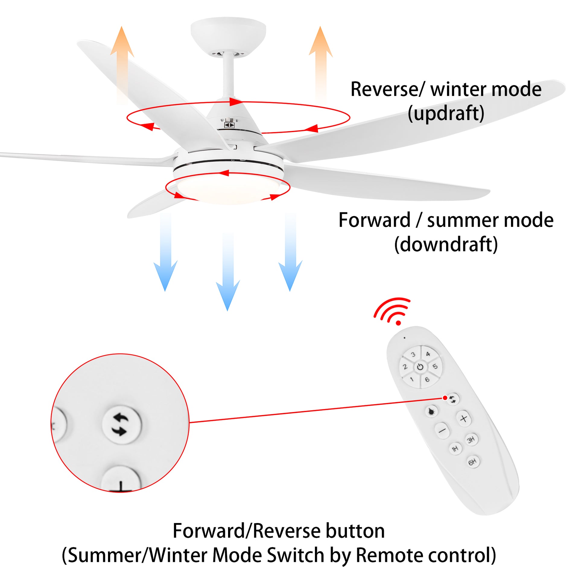 - 6-speed reversible control allows for all season comfort