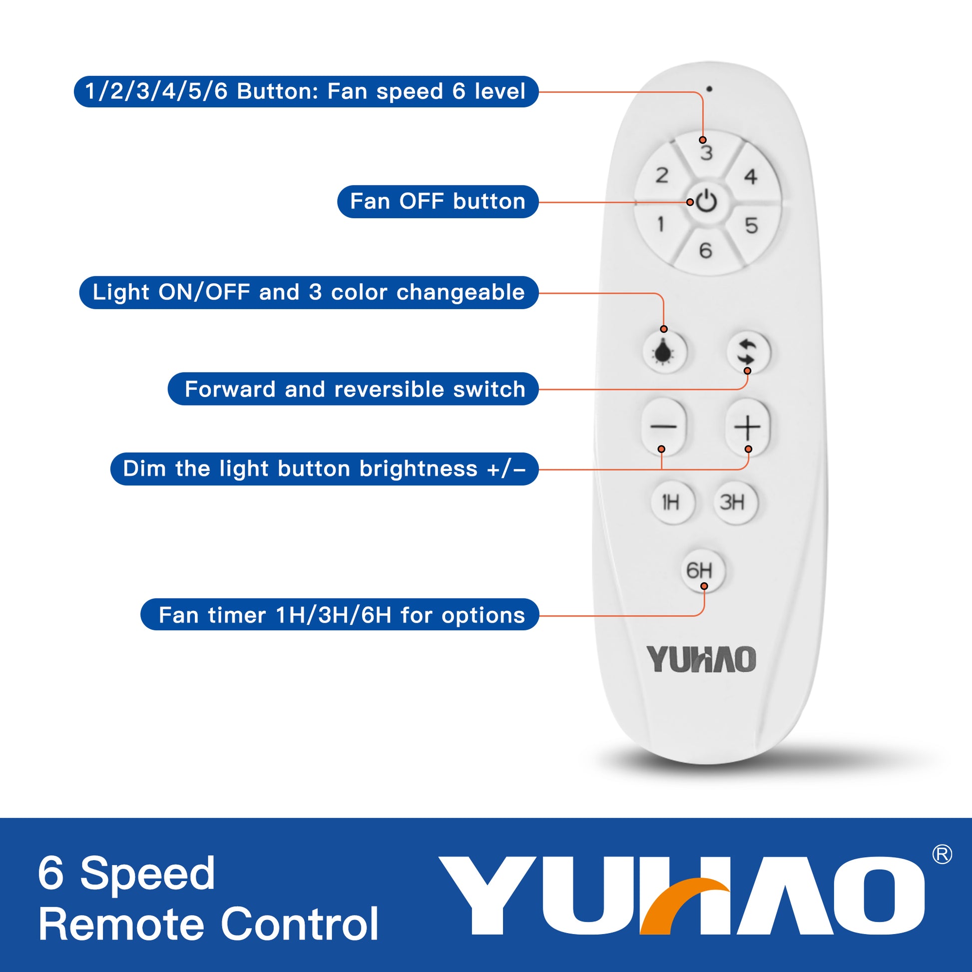 - All operations of the ceiling fan are controlled by the remote