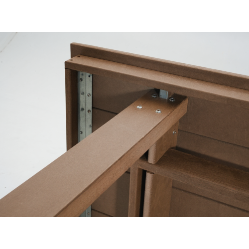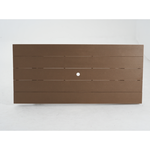 - Modern brown finish and clean lines pair easily with metal, rattan, or HDPE chairs to create a contemporary outdoor setup.