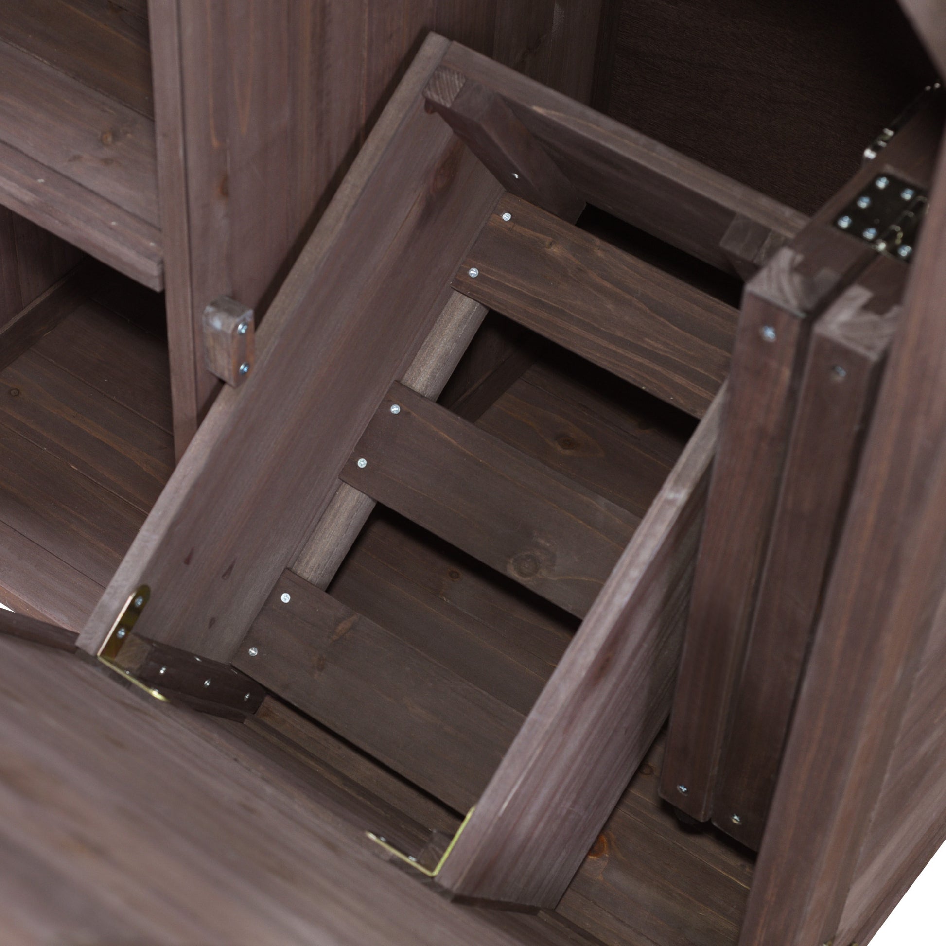 78.3" Outdoor Kitchen Island with Foldable Grill Table, Wooden Outdoor Grill Cart with Trash Can Storage & Stainless Steel Top, Outdoor Bar Cart, Pizza Oven Table for Lawn & Garden, Dark Brown