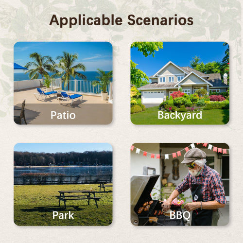 - 【Versatile Safety Design】The built-in 2-inch diameter umbrella hole fits most parasols, allowing you to enjoy a shaded dining experience. In addition, the smooth rectangular edges are carefully designed to prevent accidental impacts, and the free spray paint option allows you to personalize the picnic table to match your unique style.