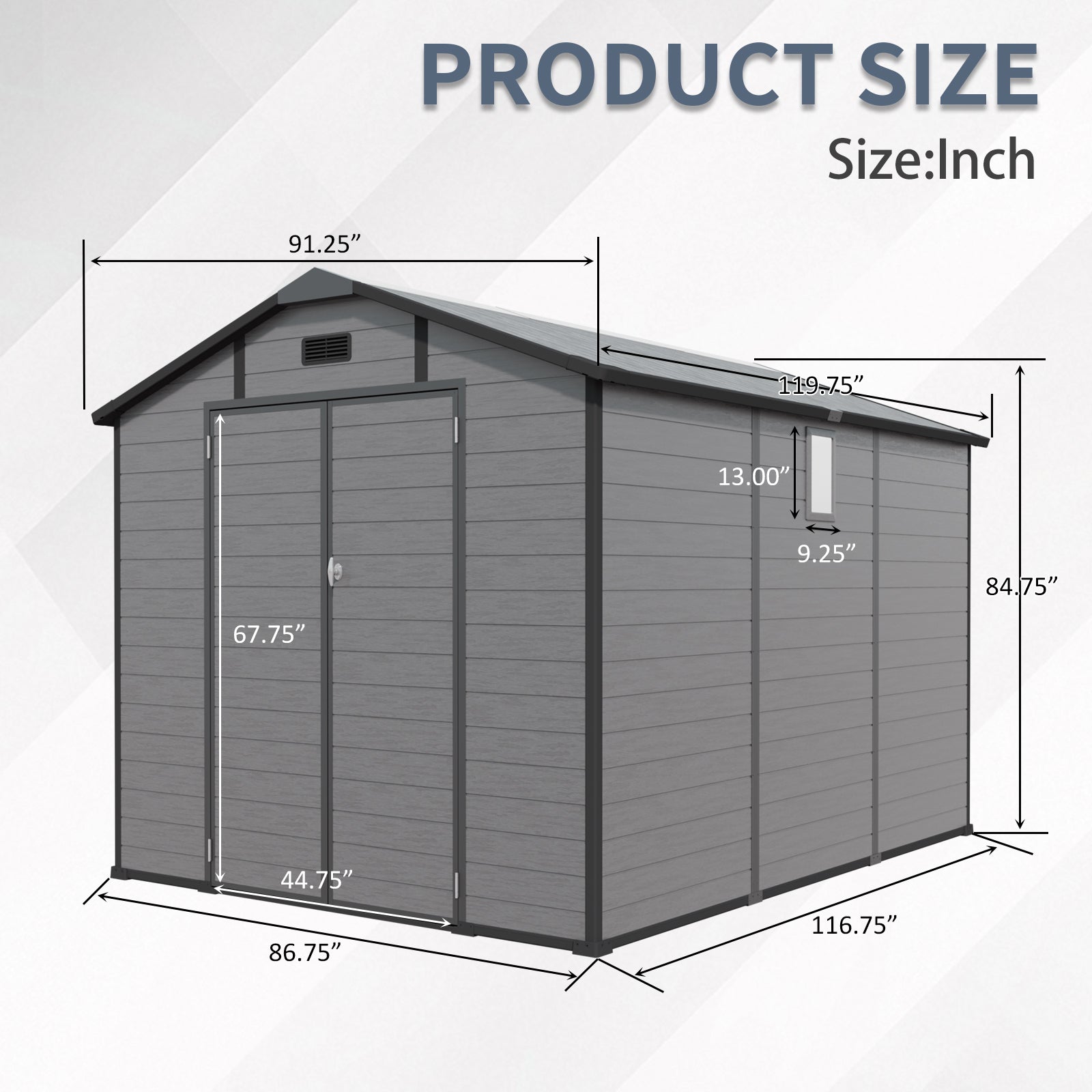 8x10 FT Plastic Outdoor Storage Shed - Lockable Resin Tool Shed with Window & Floor, Dark Gray