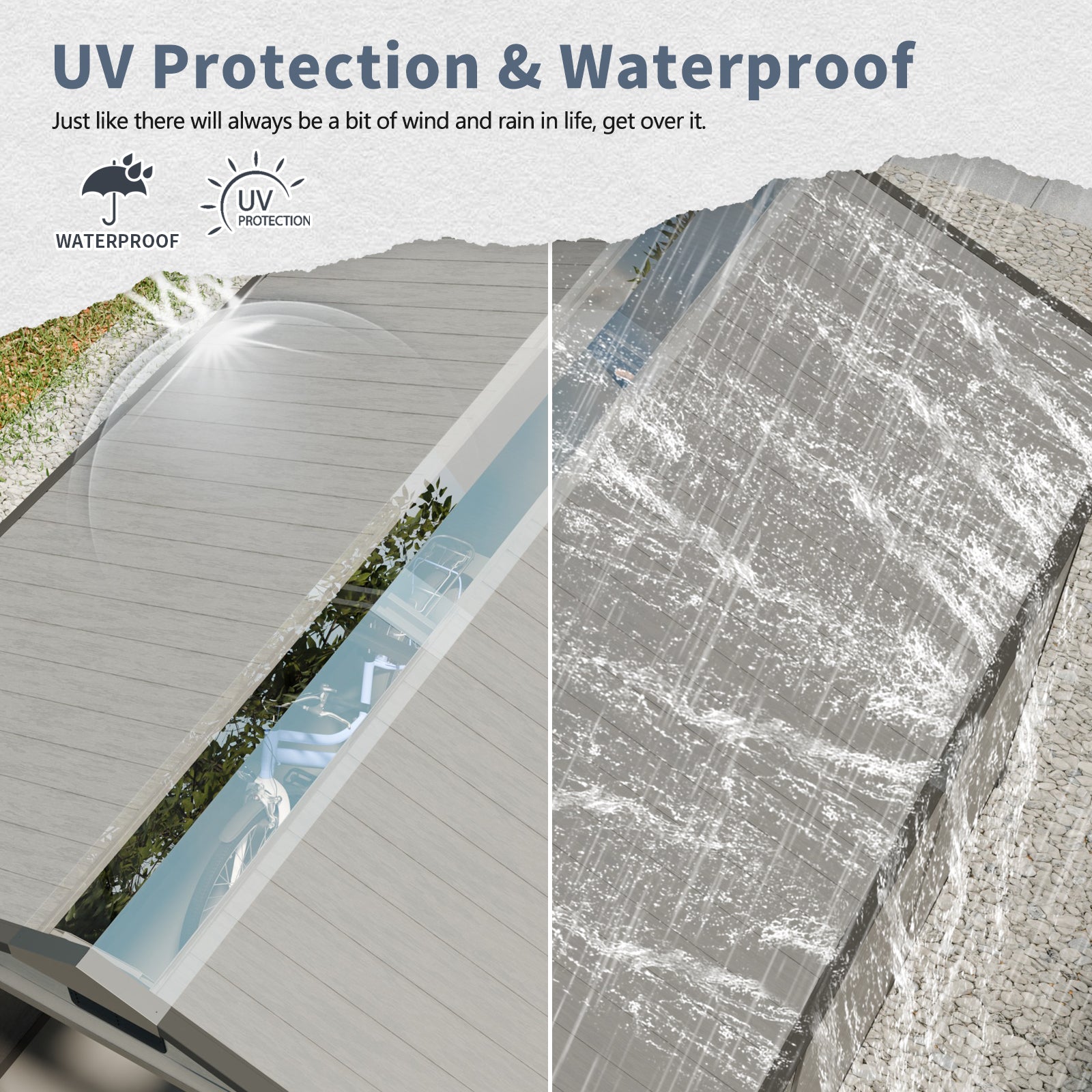 - HEAVY-DUTY CONSTRUCTION: Metal reinforced, multi-wall resin panels provide water resistance and UV protection for all-weather durability, while the reinforced resin floor withstands heavy loads.