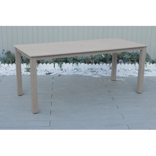 A wooden-textured imitation wood dining table, simple yet with a high quality feel. It has a small tabletop and is perfect for outdoor picnics. Light gray color, 68.9 inches long.