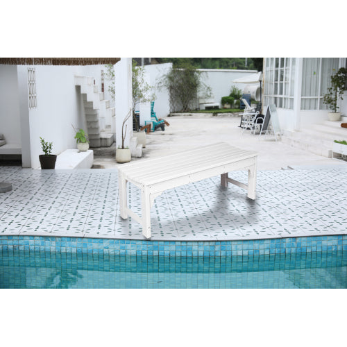 Backless HDPE Bench with Wood Texture, Poly Lumber Seat for Patio, Backyard, Balcony, All Weather Resistant with UV Protection, White