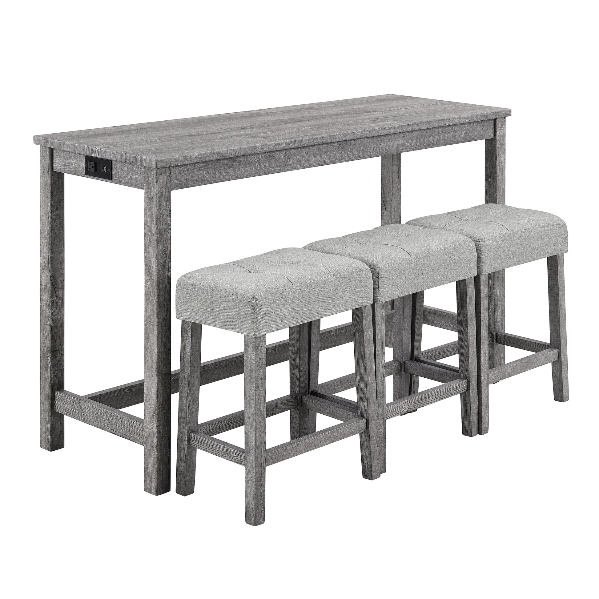 Bar Table Set with Power Outlet, Bar Table and Chairs Set, 4 Piece Dining Table Set, Industrial Breakfast Table Set, for Living Room, Dining Room, Game Room