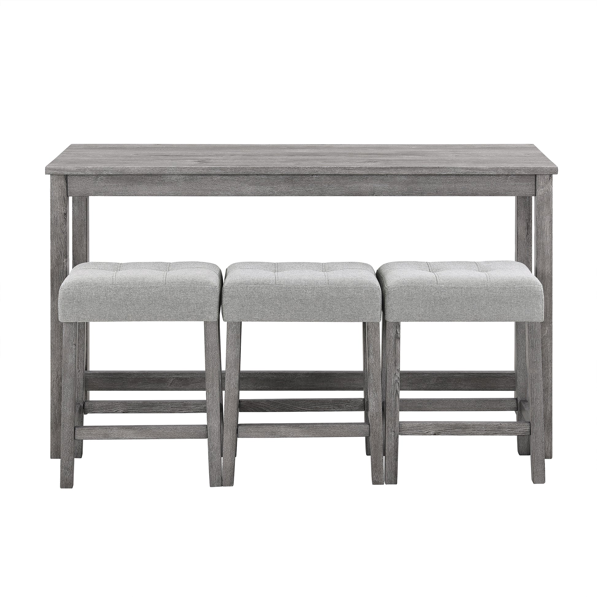 - 1.Exquisite appearance:Industrial dining table: This bar table and chair features a high-quality imitation wood grain surface, making it an excellent addition to your kitchen, gaming room, or living room. Space saving and perfect fit: Three 18 "long x 11" wide x 24.25 "high bar stools can fit perfectly under the table when not in use, maximizing space while maintaining aesthetics. Foot mats not only increase stability but also prevent floor scratches.