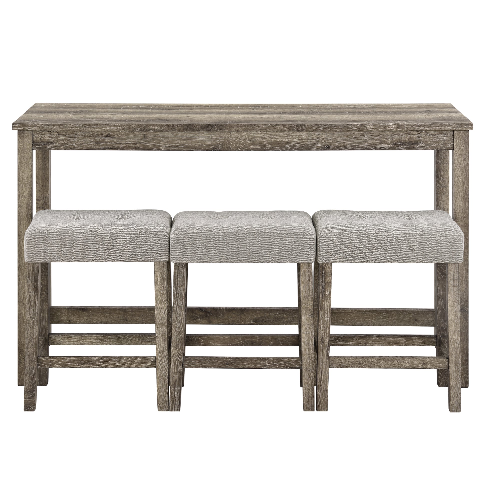 - 1.Exquisite appearance:Industrial dining table: This bar table and chair features a high-quality imitation wood grain surface, making it an excellent addition to your kitchen, gaming room, or living room. Space saving and perfect fit: Three 18 "long x 11" wide x 24.25 "high bar stools can fit perfectly under the table when not in use, maximizing space while maintaining aesthetics. Foot mats not only increase stability but also prevent floor scratches.