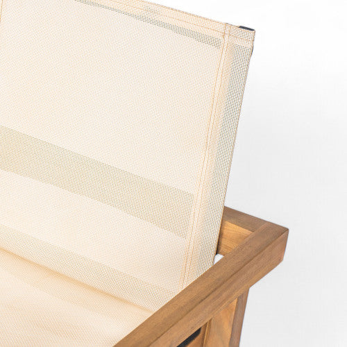 - Versatile Outdoor Seating: These mesh and wood dining chairs are perfect for any outdoor dining setup. Crafted with durable acacia wood frames and sleek beige mesh seating, they're ideal for poolside gatherings or main dining areas.