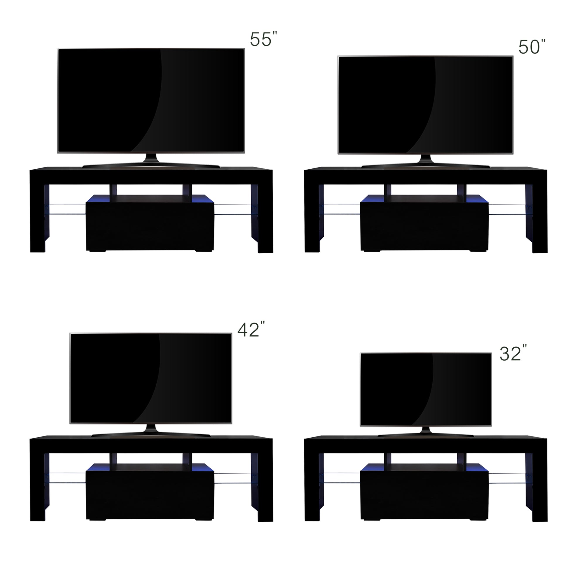 Black TV Stand with LED RGB Lights,Flat Screen TV Cabinet, Gaming Consoles - in Lounge Room, Living Room and Bedroom(Black)