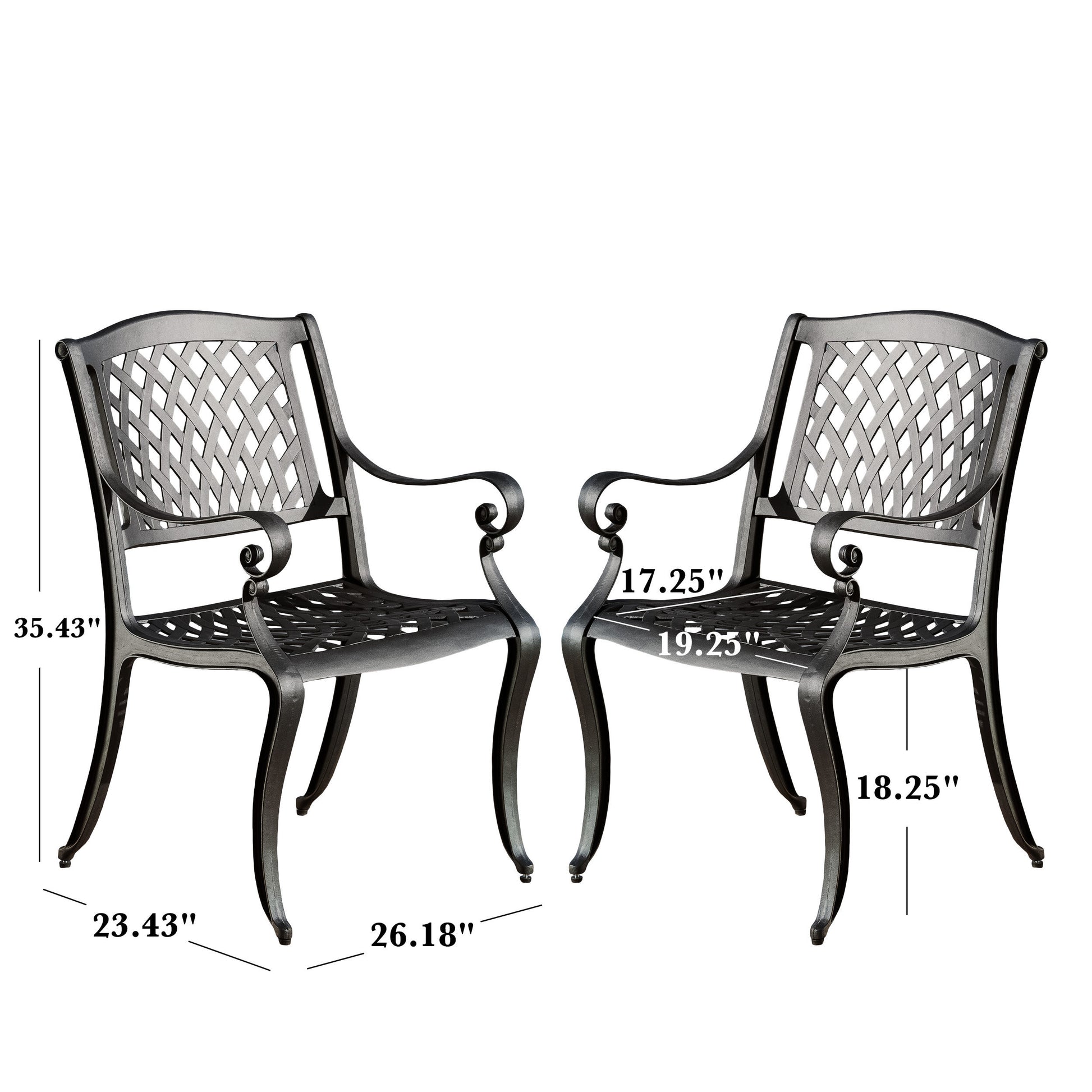 - Made from cast aluminum, these durable, high-quality chairs feature a mesh-style backrest and seat rest.