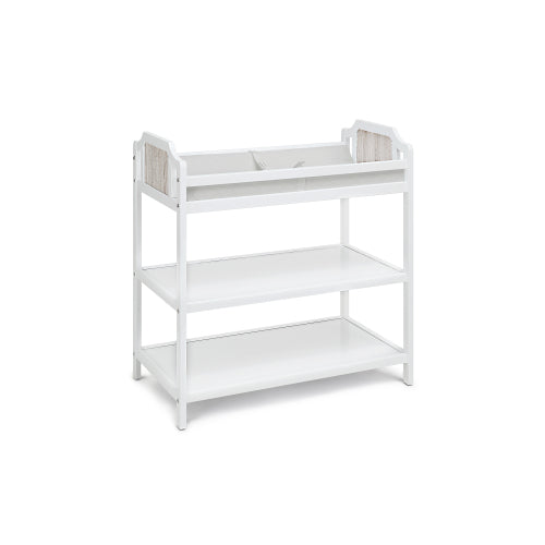 - The coordinating, changing table is the easiest and safest place to change your baby. Made with the same quality and design of the crib, it’s the perfect addition to your nursery. Designed with two open storage shelves for those diapers and baby necessities. However, when you no longer need it as a changing table, it’s the perfect shelf for your child’s toys and books. And even later for yourself, it’s the perfect bar cart!