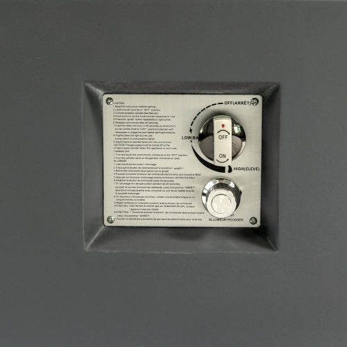 - User-Friendly Operation: Push-button ignition and adjustable flame control knob for easy start-up and customized warmth.