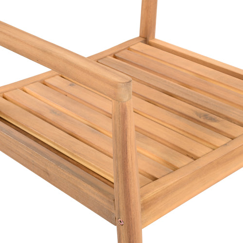 - Comfortable Design:Acacia wood seats with air holes offers a flexible yet supportive seating experience, conforming to your body while allowing airflow to keep you cool. The slightly reclined backrest (31.1" height) provides optimal lumbar support, making it perfect for long meals or relaxed lounging. Unlike traditional outdoor chairs, this design prevents the "sticky" feeling of plastic or metal seating.