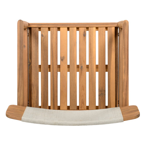 CREATIVE BRAIDED ACACIA WOOD OUTDOOR DINING TABLE AND CHAIRS WITH ARMRESTS, SUITABLE FOR OUTDOOR DINING AND LEISURE PLACES, TEAK LOOK & WHITE ROPE,SET OF 2