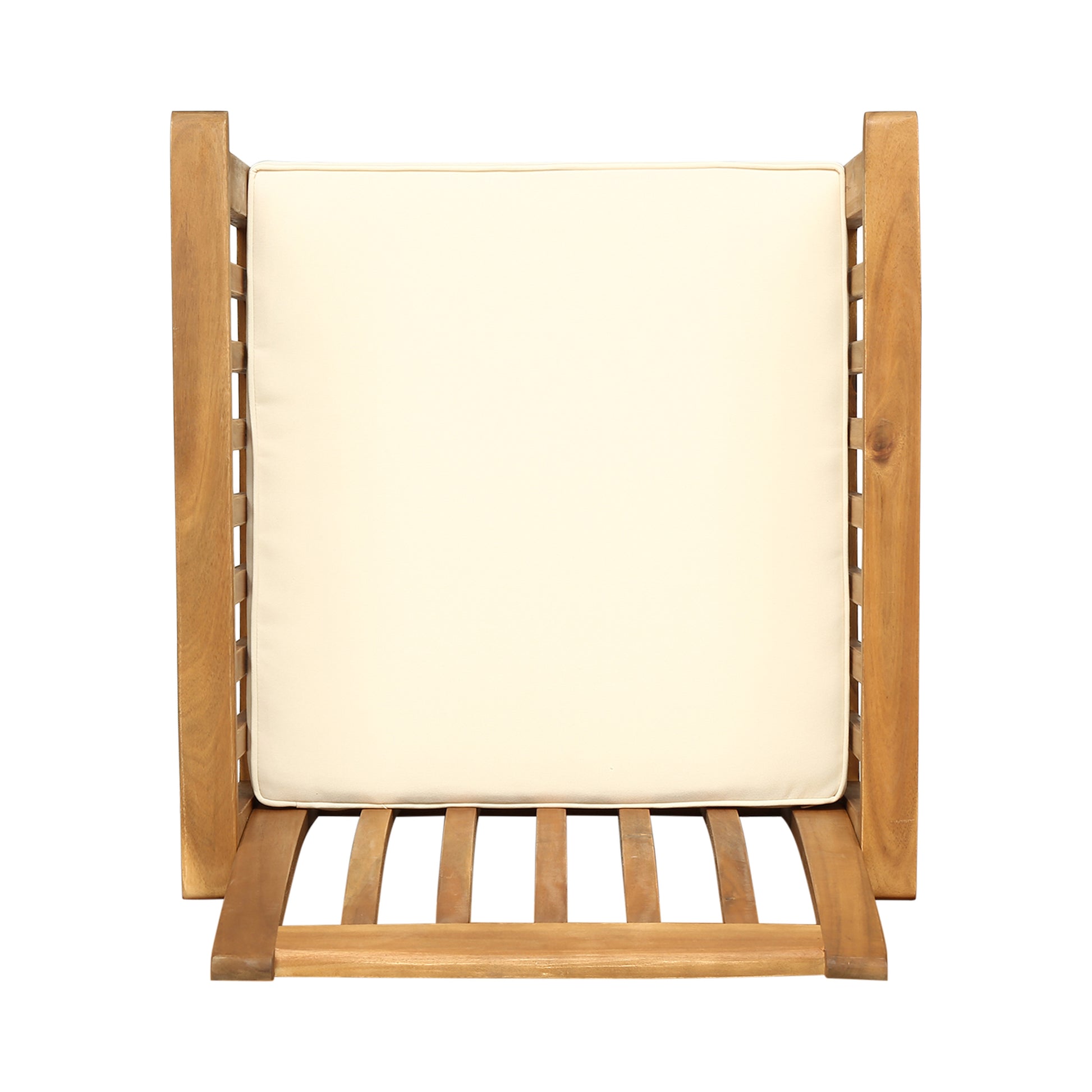 - EASY TO MAINTAIN: This set is naturally weather resistant to most elements and its lifespan can be extended by covering or storing your cushions when not in use. Apply teak oil as needed to maintain appearance.