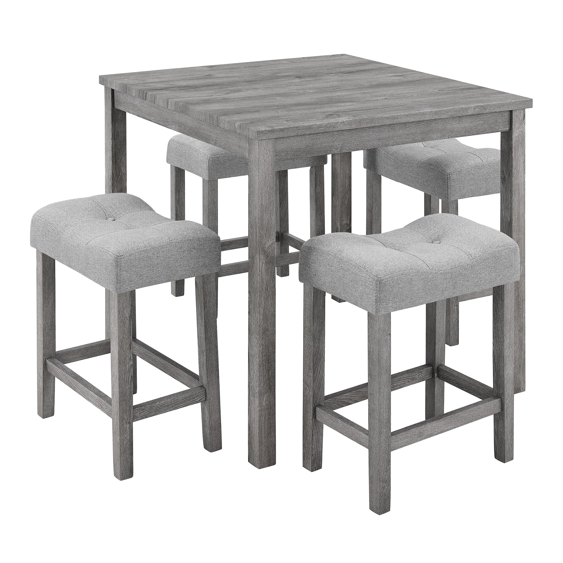 - 1.Exquisite appearance:Industrial dining table: This bar table and chair features a high-quality imitation wood grain surface, making it an excellent addition to your kitchen, gaming room, or living room. Space saving and perfect fit: Four 18 "long x 11" wide x 24.25 "high bar stools can fit perfectly under the table when not in use, maximizing space while maintaining aesthetics. Foot mats not only increase stability but also prevent floor scratches.