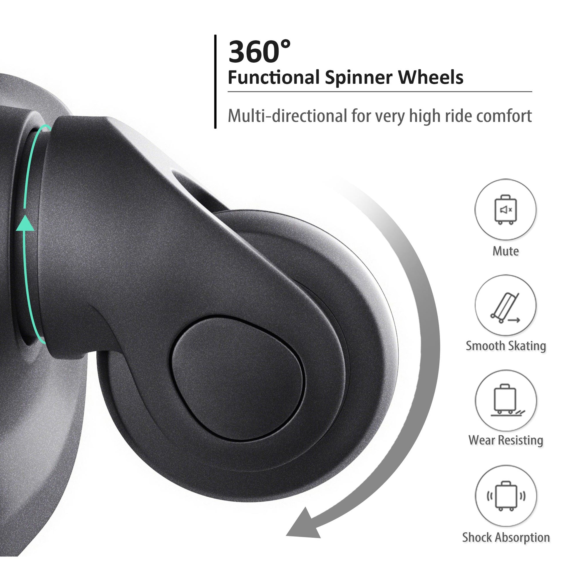 - [360° Spinner Wheels] Each luggage is fitted with quad smooth-glide base 360 degree swivel spinner wheels for easy transportation through terminals, on concrete, cobblestone and more.