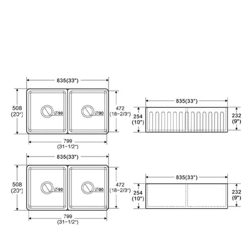 - Reversible: 1-side is smooth and flat, and the other side has a decorative fluted design, so you can decide how you want to install based om your preference, Double bowl design: 33" L X 20" W front-to-back gives you plenty of usable space, extra deep bowl: 10 in internal bowl depth gives ample space for all your dishes and pans.