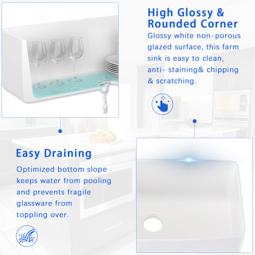 - Fireclay composition reduces and absorbs sink noises.