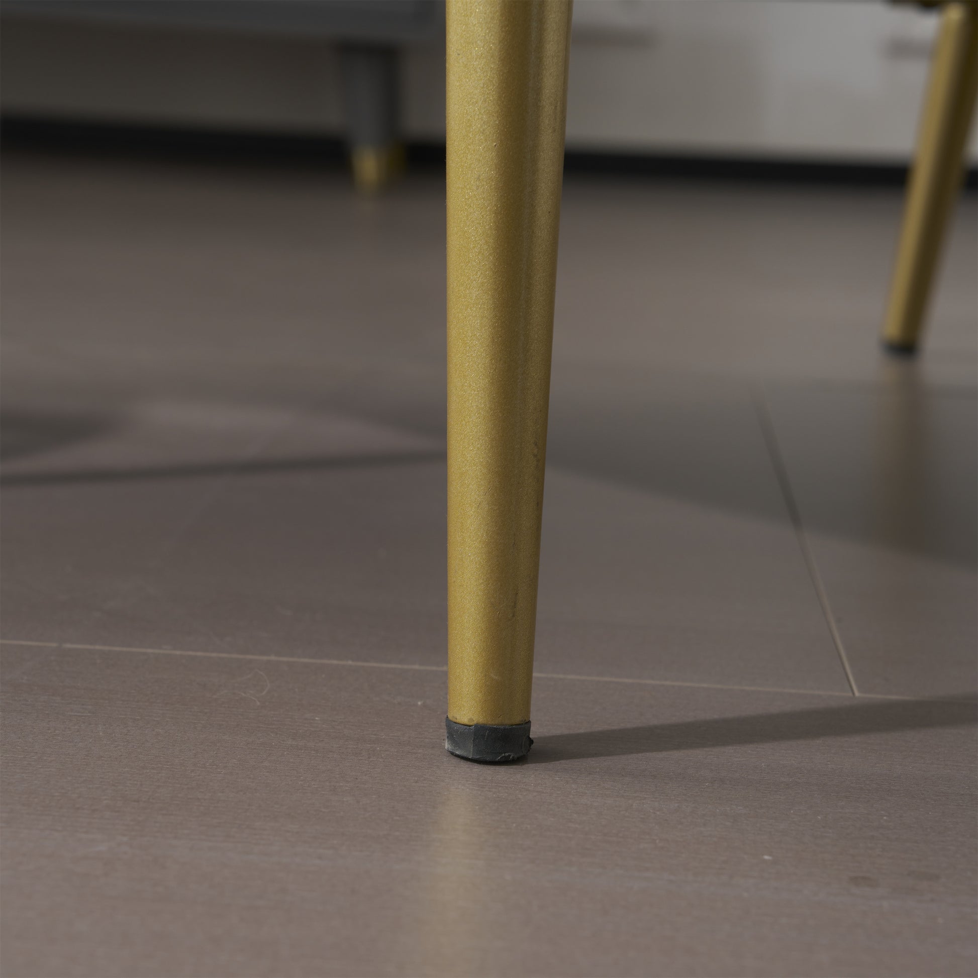- Adjustable Gold Metal Legs: The chair's legs are meticulously crafted with an electroplated and spray-painted finish, delivering a sleek, polished surface that is both visually appealing and highly durable. The lustrous gold finish adds a touch of opulence, perfectly complementing the vibrant floral upholstery and enhancing the chair's luxurious aesthetic. Besides, equipped with adjustable foot glides, the chair can be leveled on uneven surfaces, ensuring stability while protecting your floors.