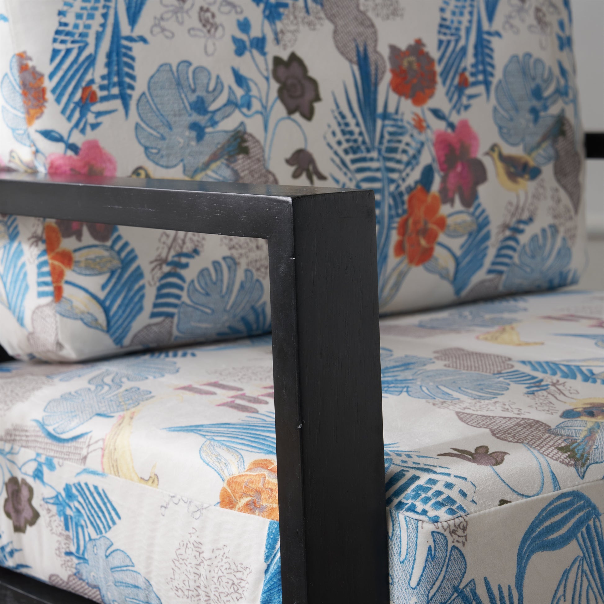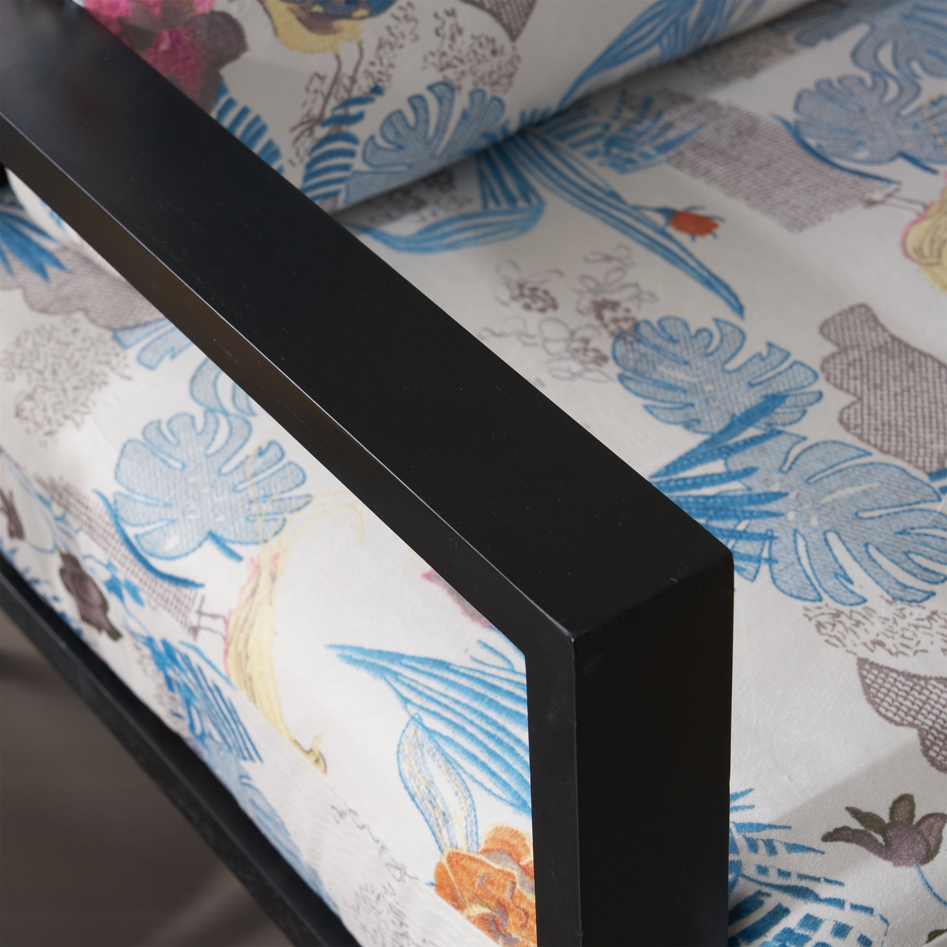 - Perfect Combination of Oriental and American Aesthetics: The blue floral print armchair reflects a harmonious blend of oriental elegance and vintage American sophistication. The bold and vibrant pattern, inspired by abstract art and adorned with flourishing motifs of flying birds, symbolizes the beauty of spring and the renewal of life. Its timeless design, paired with artistic craftsmanship, elevates the ambiance of any space, making it a hallmark of refined taste and unique style.