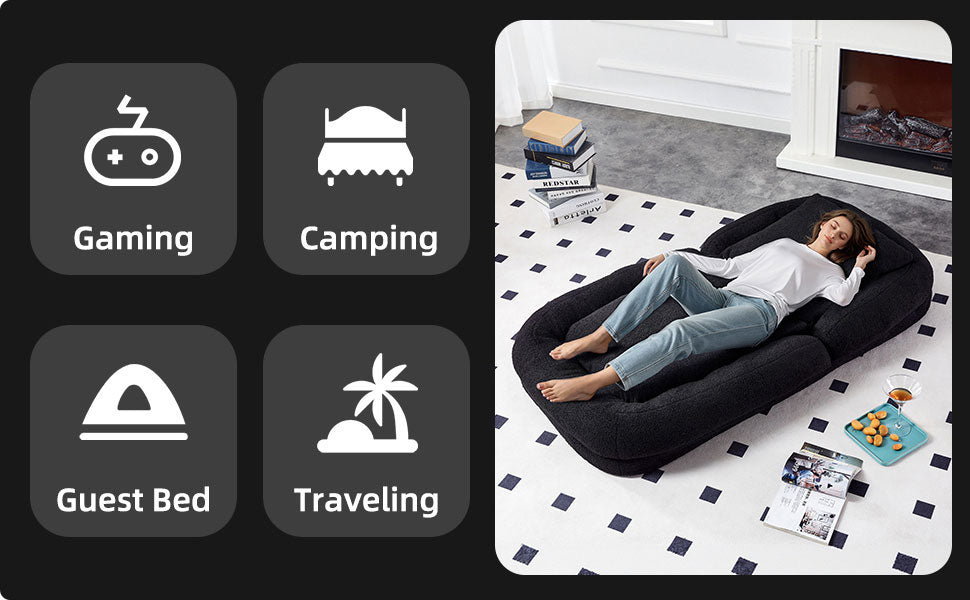 - Multi-Purpose Use: Versatile and practical, this folding floor gaming chair transforms effortlessly into a baby bed, pet bed, seat, nap mat, or sleeping pad, adapting to your every need.