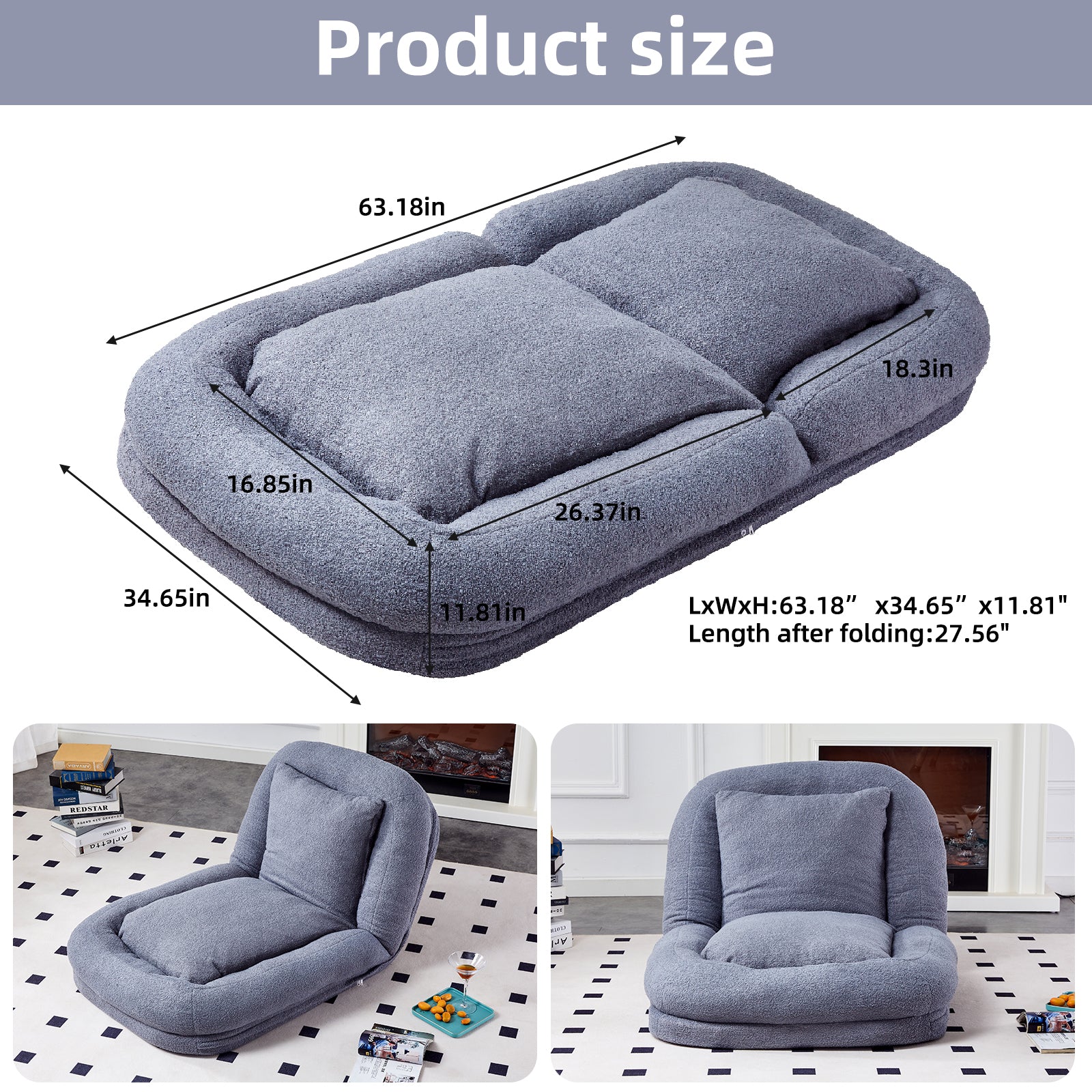 Folding Sofa Chair with 5 Adjustable Positions Plush Floor Lounge Chair for Gaming, Meditation, and Relaxation