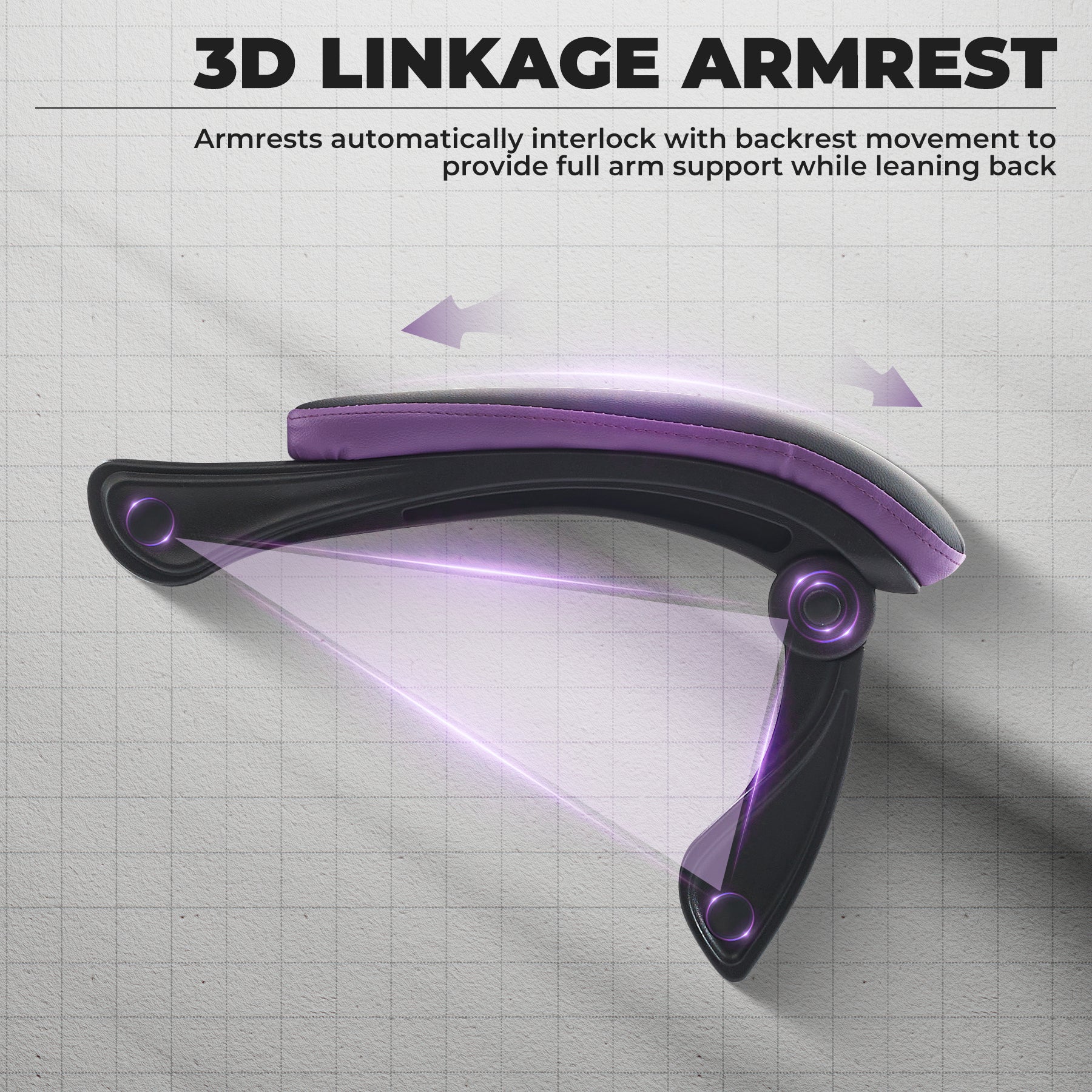 - Upgrade The Linkage Armrest: The game chair uses a 3D linkage armrest design. The armrest is linked to the tilt Angle of the back of the chair. As the back reclines, the armrest is adjusted in sync to ensure full support for the arm at any Angle. This design enhances comfort and greatly improves convenience when using, making the posture more natural and relaxed when playing or working