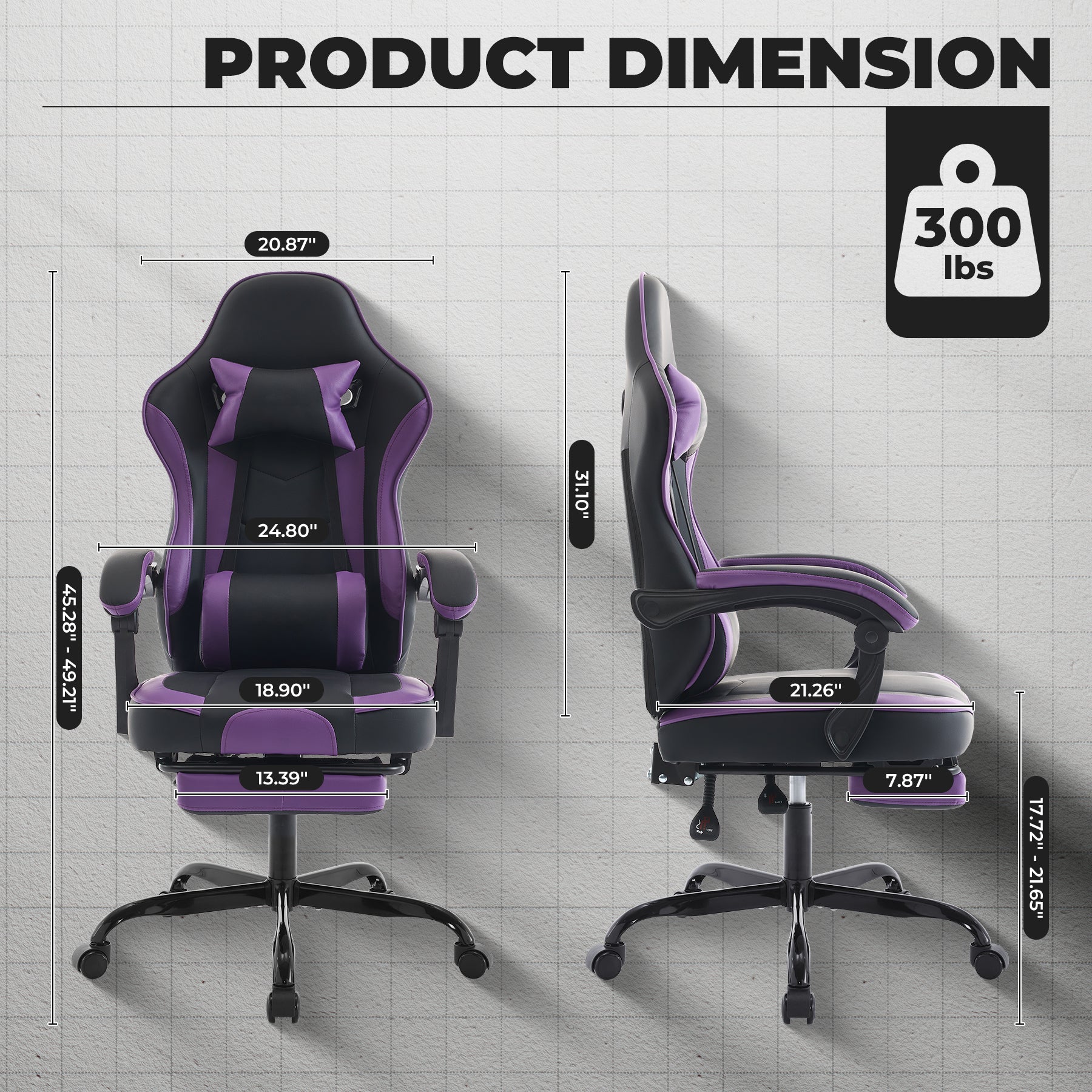 Gaming Chair, Ergonomic Computer Chair with Footrest and Massage Lumbar Support, Height Adjustable Swivel Video Game Chair for Adults, 300lb Max, Black Purple