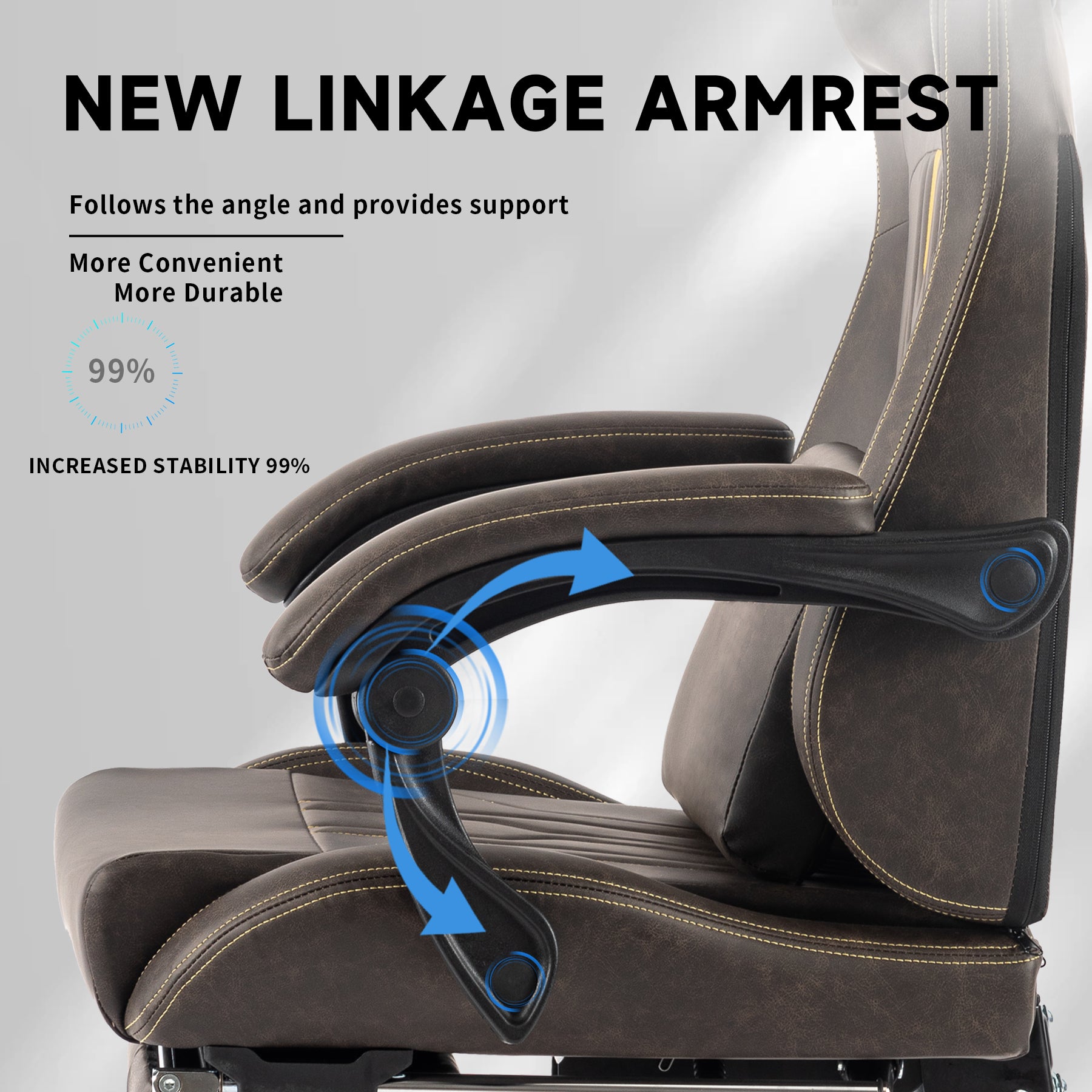 Gaming Chair, Video Game Chair with Massage Lumbar Support and Footrest, Comfortable Ergonomic Computer Chair with Linkage Armrests, Height Adjustable Racing Game Chair Pu Leather for Adults,Brown