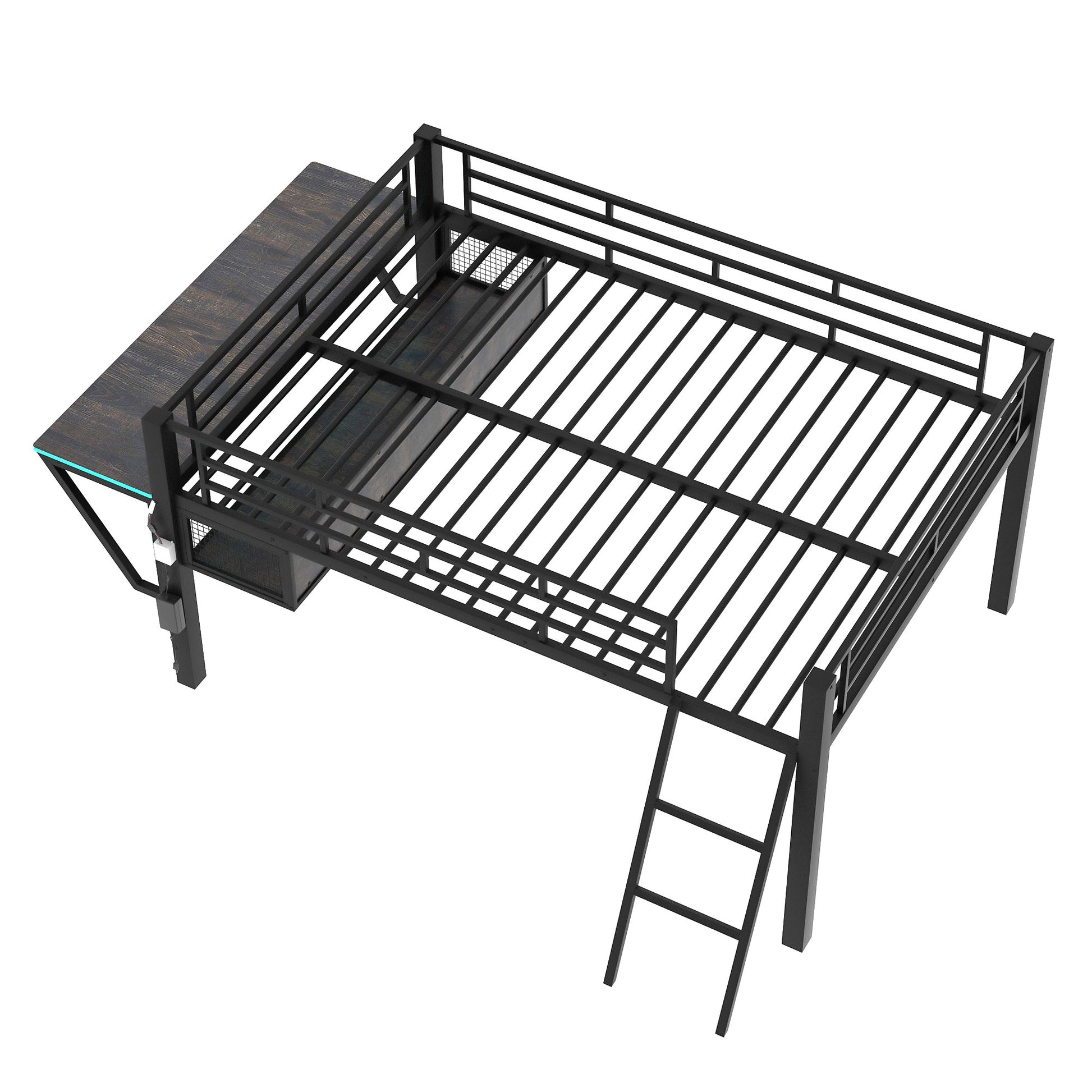 - Inspired by eSports gaming, this bed is finished in black powder coated metal, with Striped wooden wood desktop for added style points.
