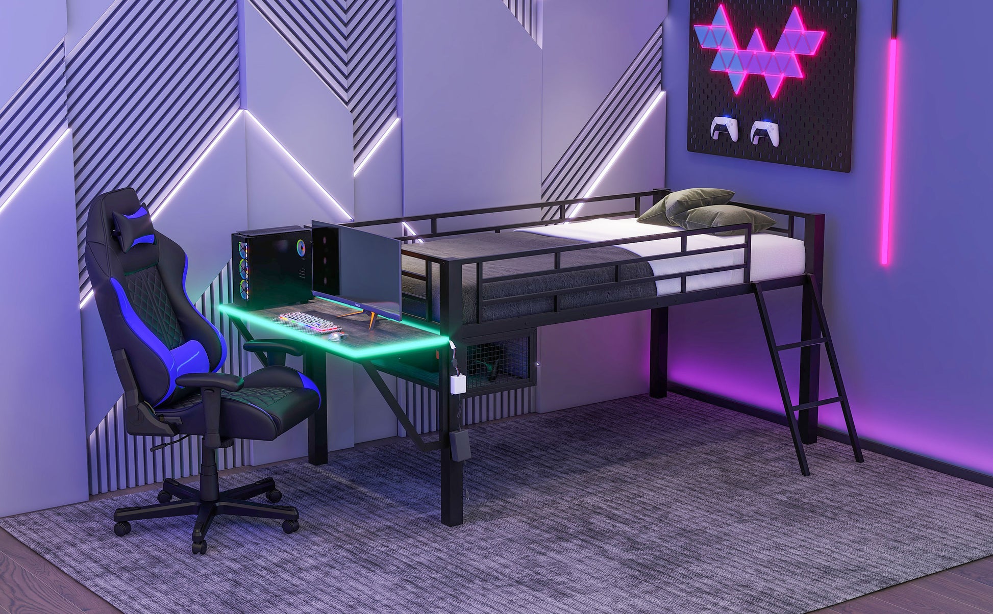 - A gaming bed, desk and storage built into one. This loft gaming bed collection provides the perfect space saving solution for any kids bedroom.