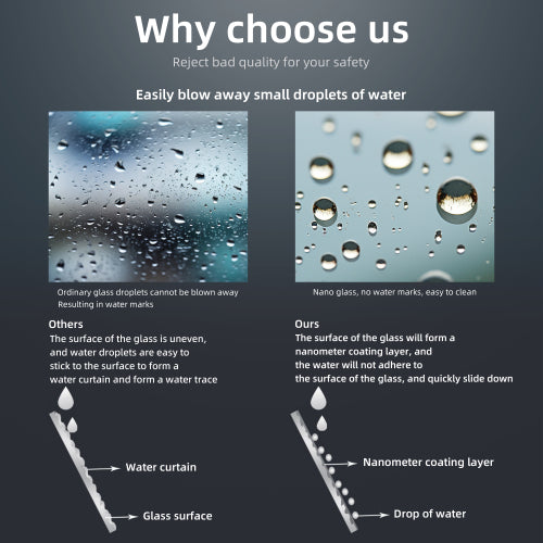 - SGCC 5/16" tempered clear glass with Nano eacy clean treatment, cleaning become easy.