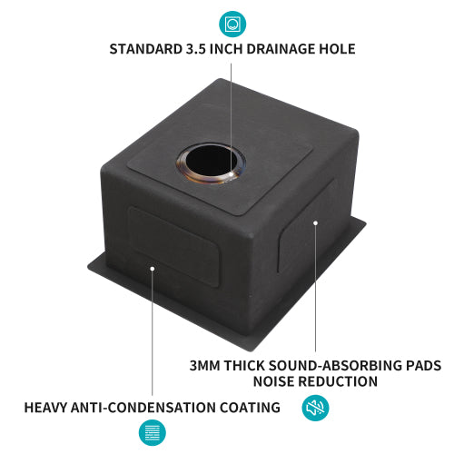 - [Coating and Silencer Pad]There is a thick coating on the outside of the sink to prevent condensation caused by weather changes. In addition, the 3mm thick rubber silencer pad can greatly reduce the noise from the faucet and give you a quieter cooking environment.