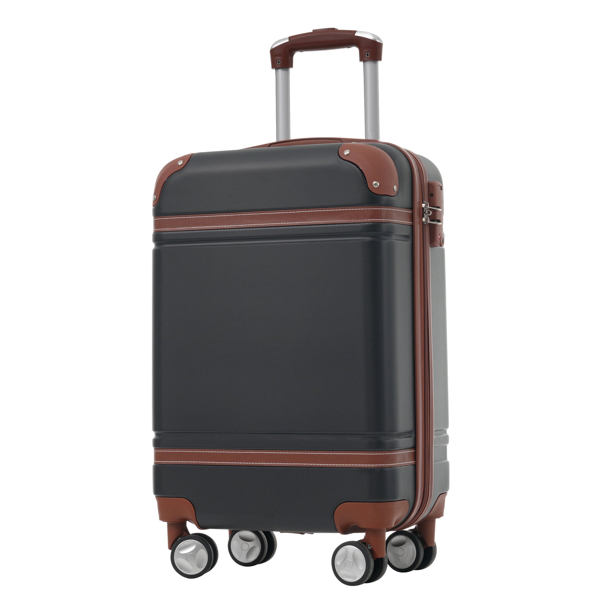 Hardshell Luggage Sets with Bags Carry-on Suitcase Double Spinner Wheels with TSA Lock ,Single Vintage Luggage 20 IN,Black