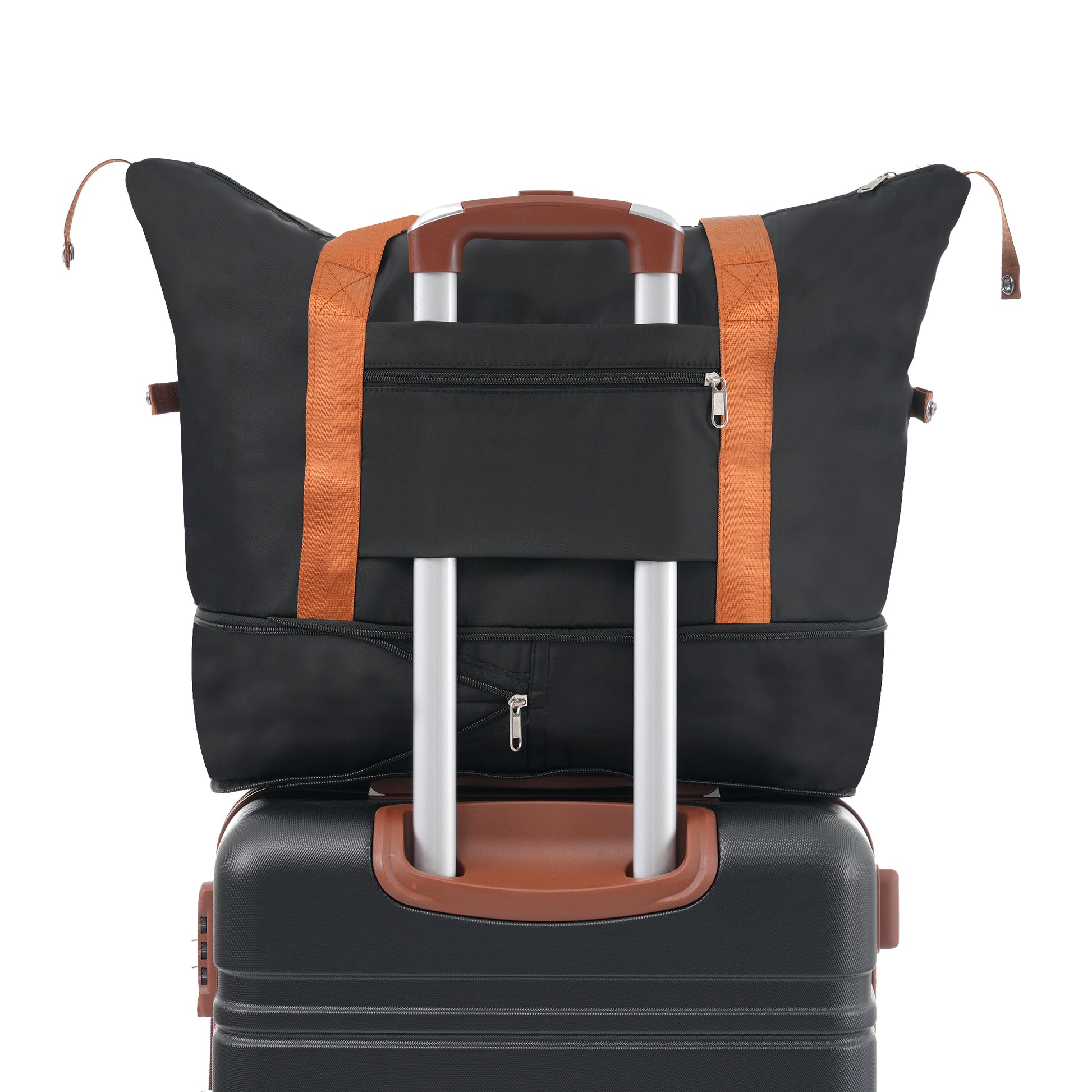 - Luggage set includes a 20-inch suitcase, a travel duffel bag, and a toiletry bag. The duffel bag has trolley sleeve with zippered pocket to pack your travel essentials, you can conveniently attach them to the adjustable suitcase handle to meet your needs.