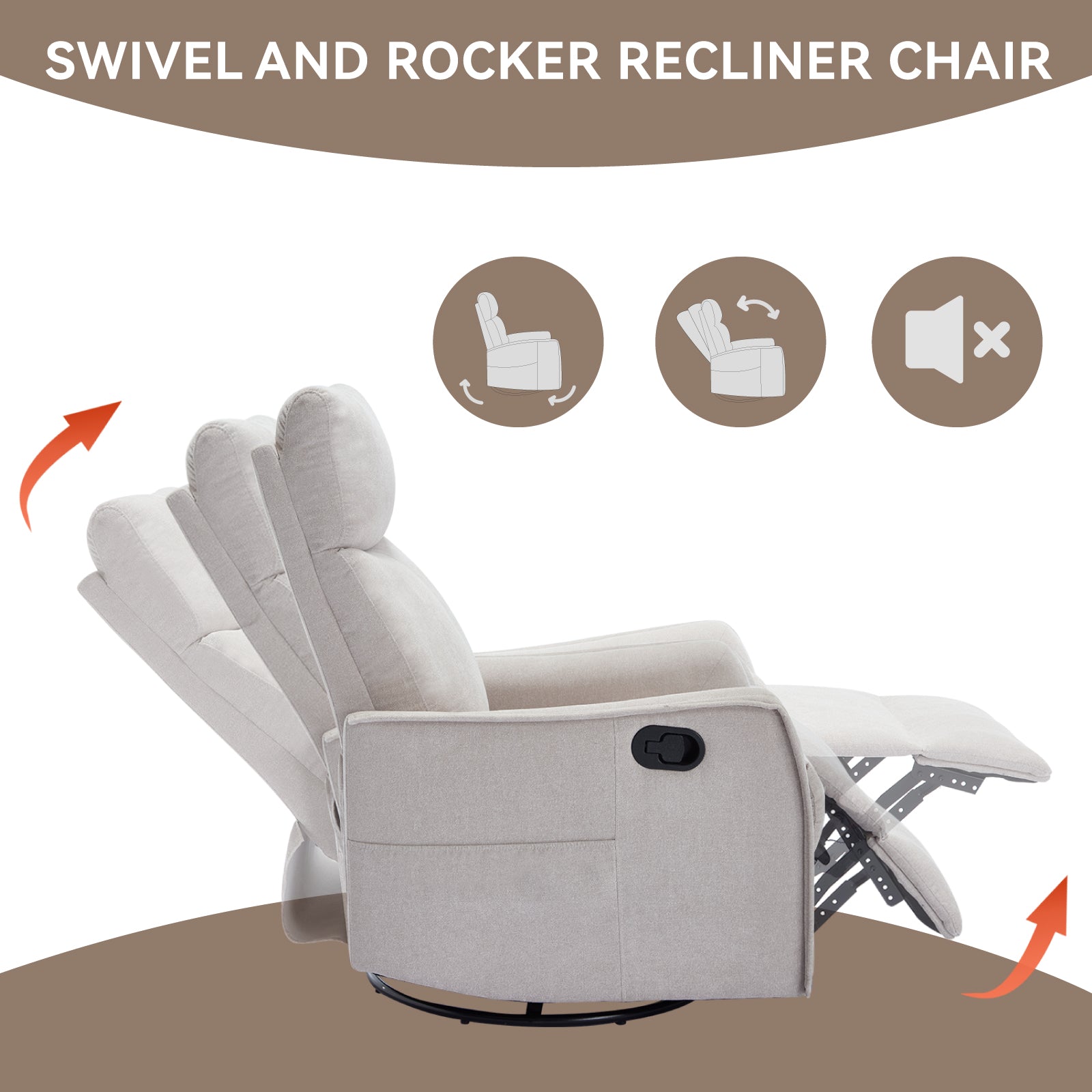 Heat Massage Manual Recliner Chair with Rocker and Swivel in Fabric for Living Room, Beige