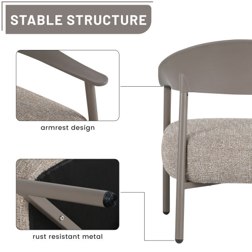 Holiday - Modern 2-Piece Accent Chair Set with Coffee Table – Warm Grey PP & Steel Frame Sofa Set, Soft Cushioned Seating for Living Room, Lounge, Balcony (2 Chairs + 1 Table)