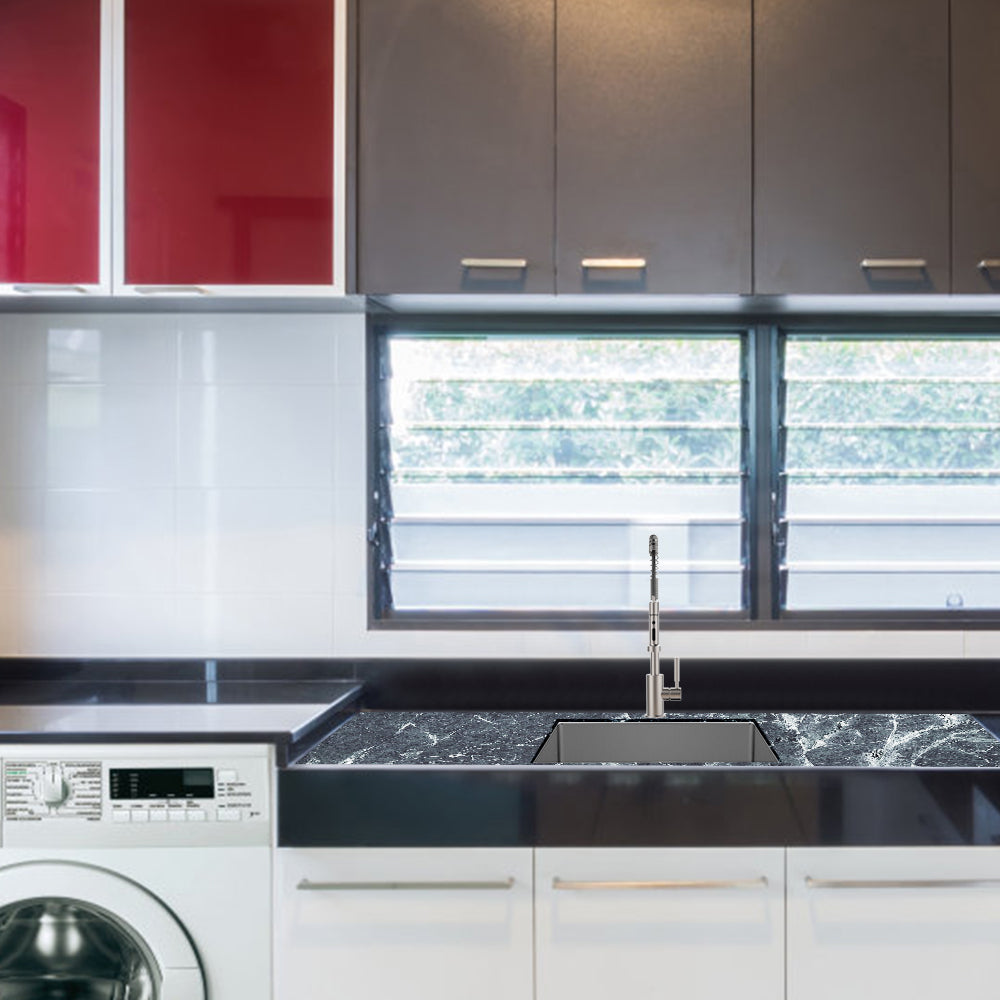 - [Deep Single] The Undermount sink with big and deep single bowl,very suitable for laundry room use.Heavy duty sound guard undercoating and thick rubber padding to minimize noise and reduce condensation.