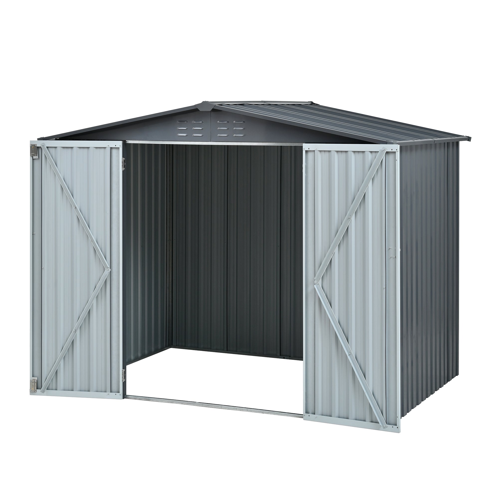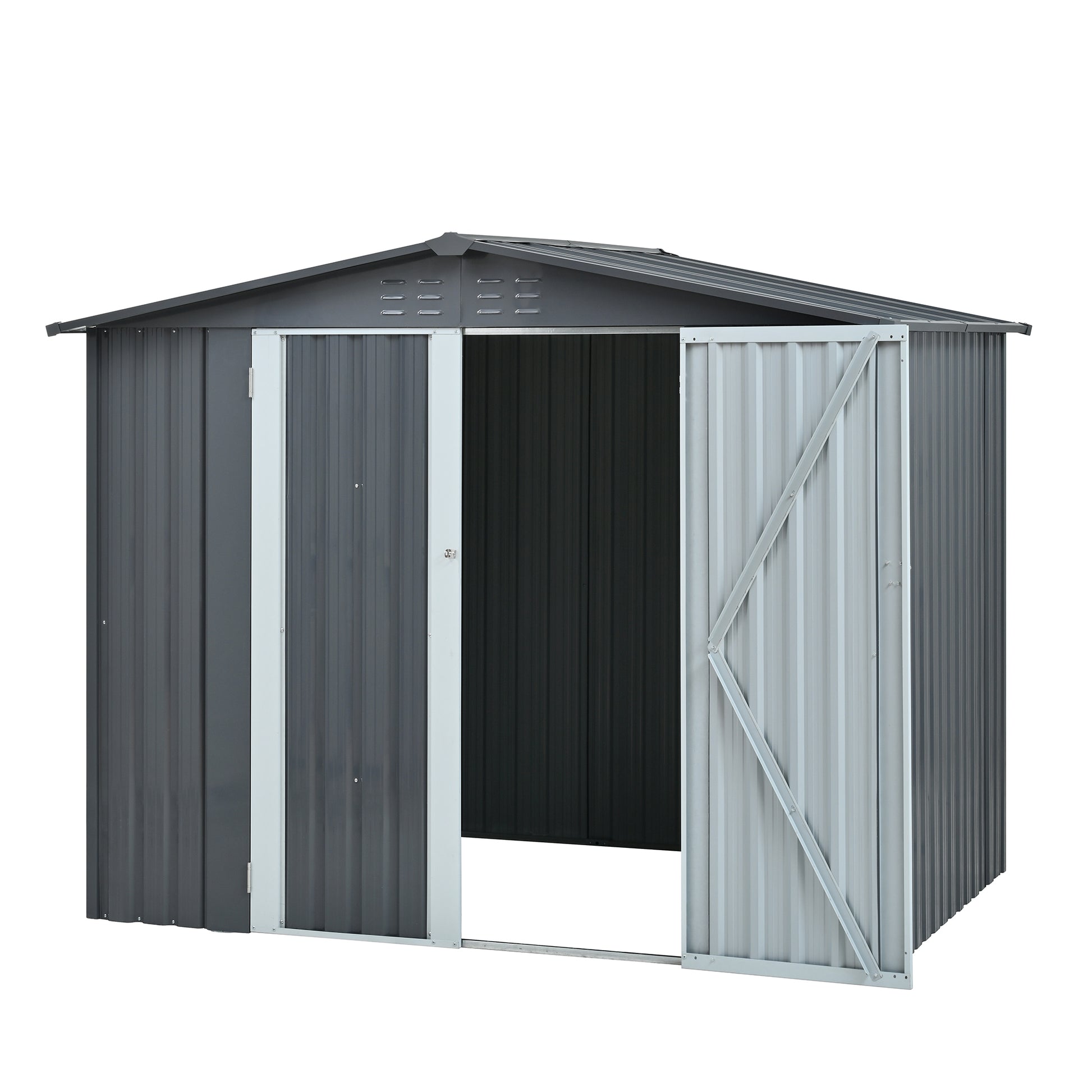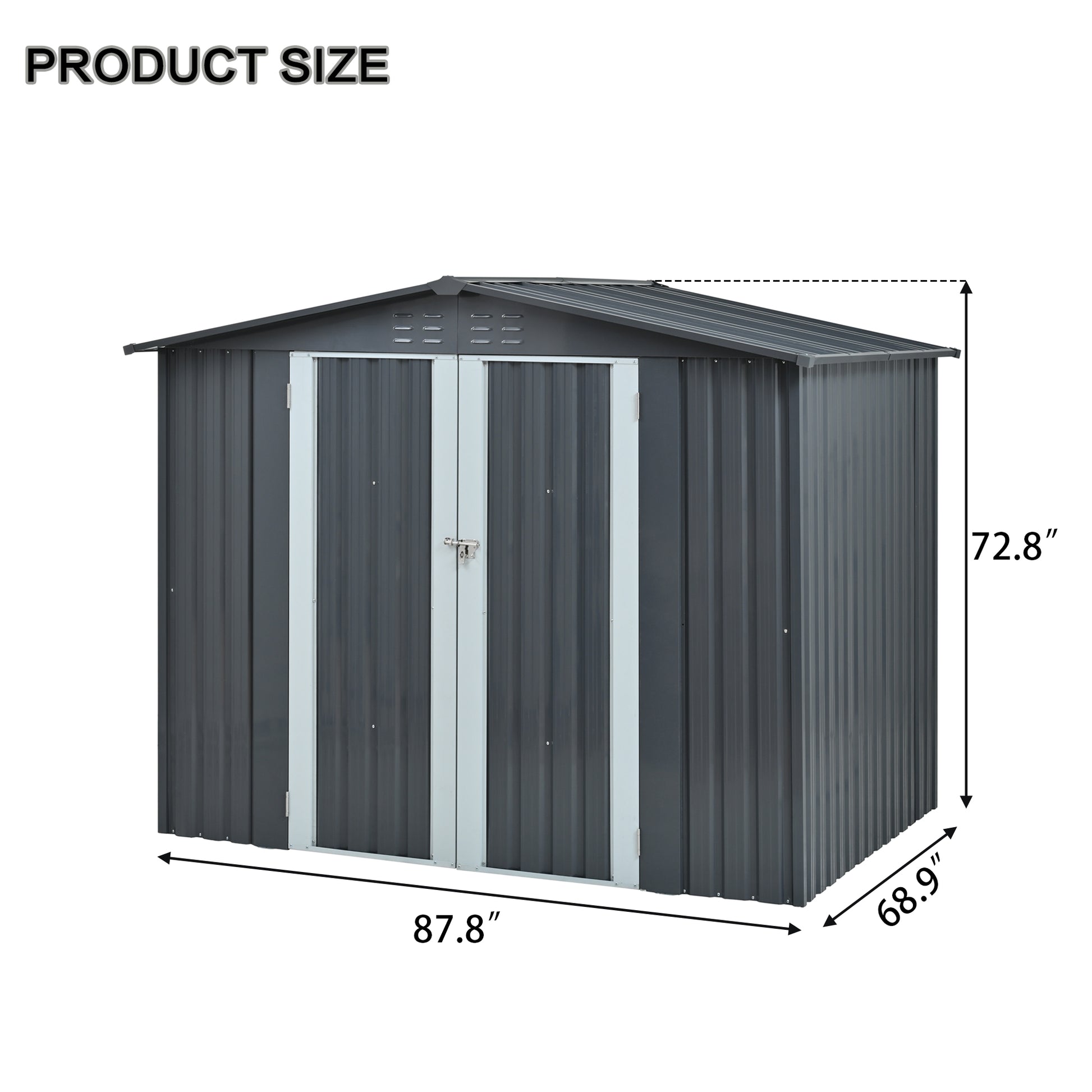 Metal Storage Shed with Double Doors, Heavy-Duty Galvanized Steel Outdoor Garden Shed for Tools, Lawn Equipment, and Yard Storage (72.8"Hx68.9"Dx87.8"W)