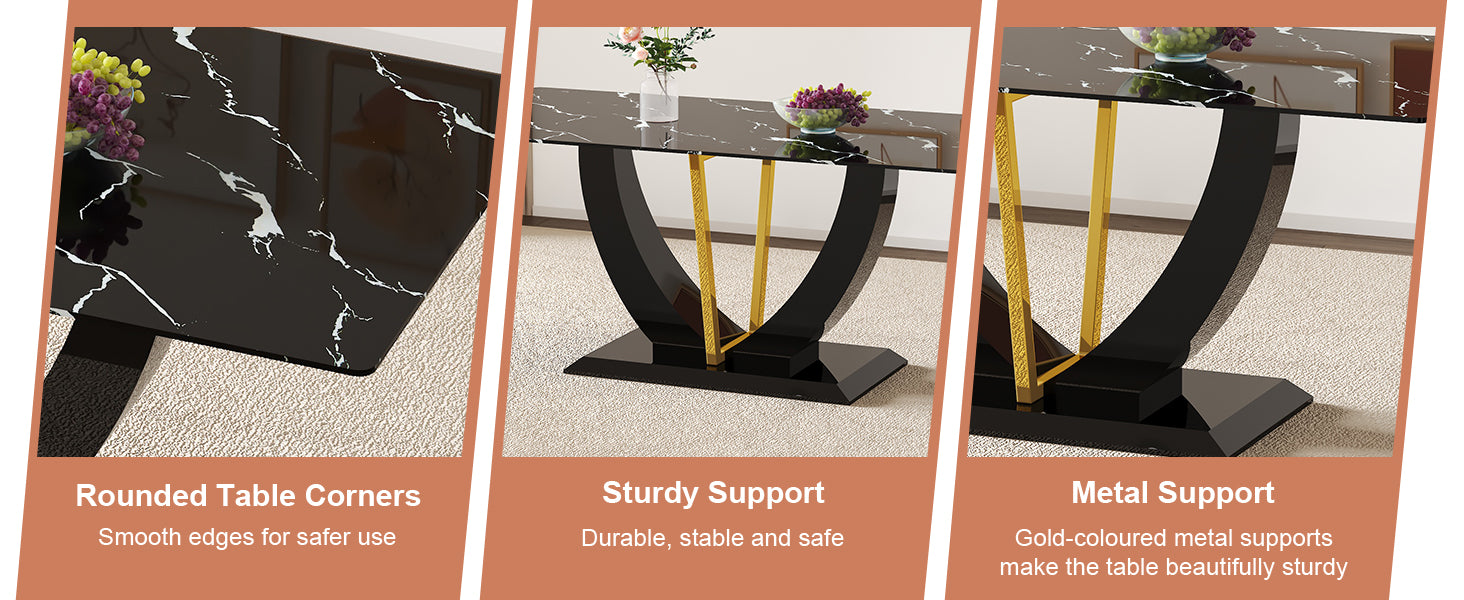 - Durable Tempering Glass Tabletop: This table features a sturdy Tempering Glass tabletop and imitation marble stickers that is resistant to scratches and stains, ensuring long-lasting durability for everyday use.