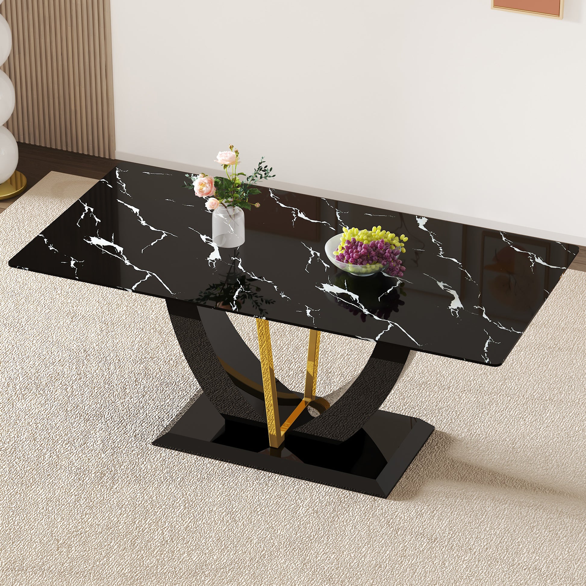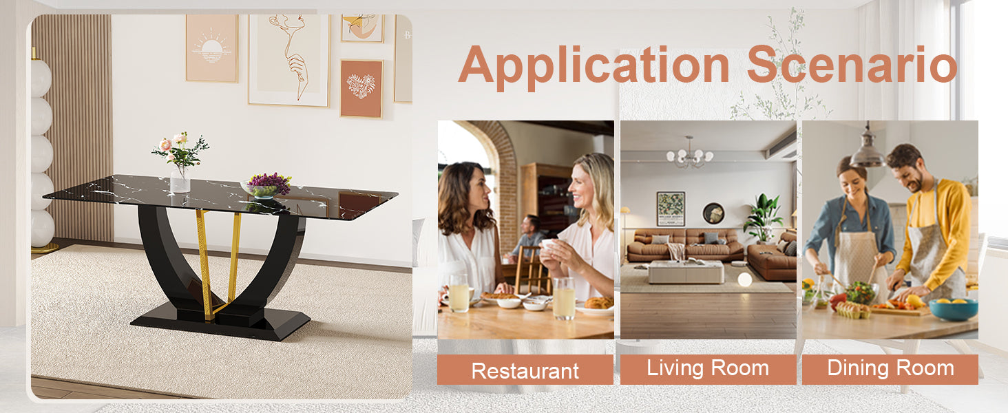 Modern minimalist and luxurious black imitation marble texture dining table rectangular office desk.Game desk .desk.For dining room, living room, terrace, kitchen F-907