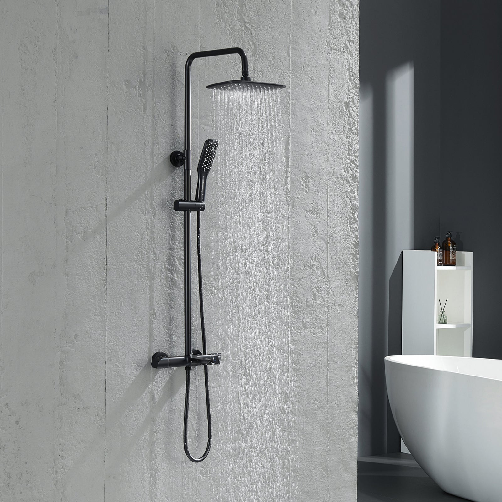 Modern Wall Bar Shower Kit 1-Spray 10 in. Square Rain Shower Head with Hand Shower in Matt Black