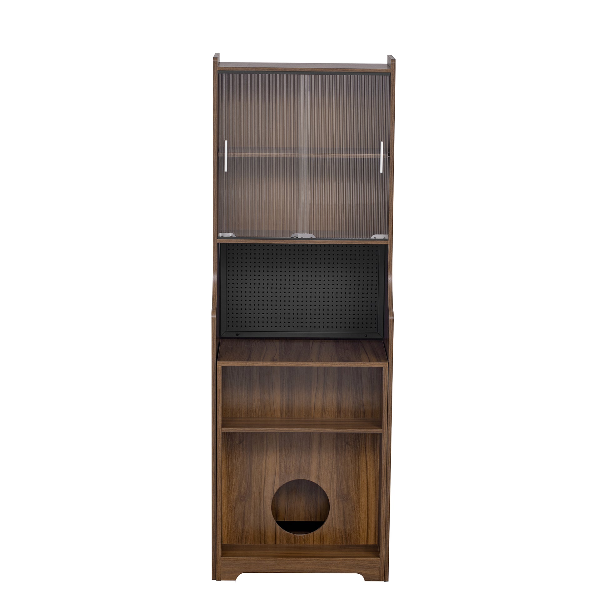 - Versatile Functions: A switch-controlled warm LED strip, sliding glass doors and Storage peg board(14.5*22.4 inch / 37*57 cm) and extendable space give you more use options, making it convenient for versatile storage use. It's beautiful color and edge is perfect for a mid-century vibe.