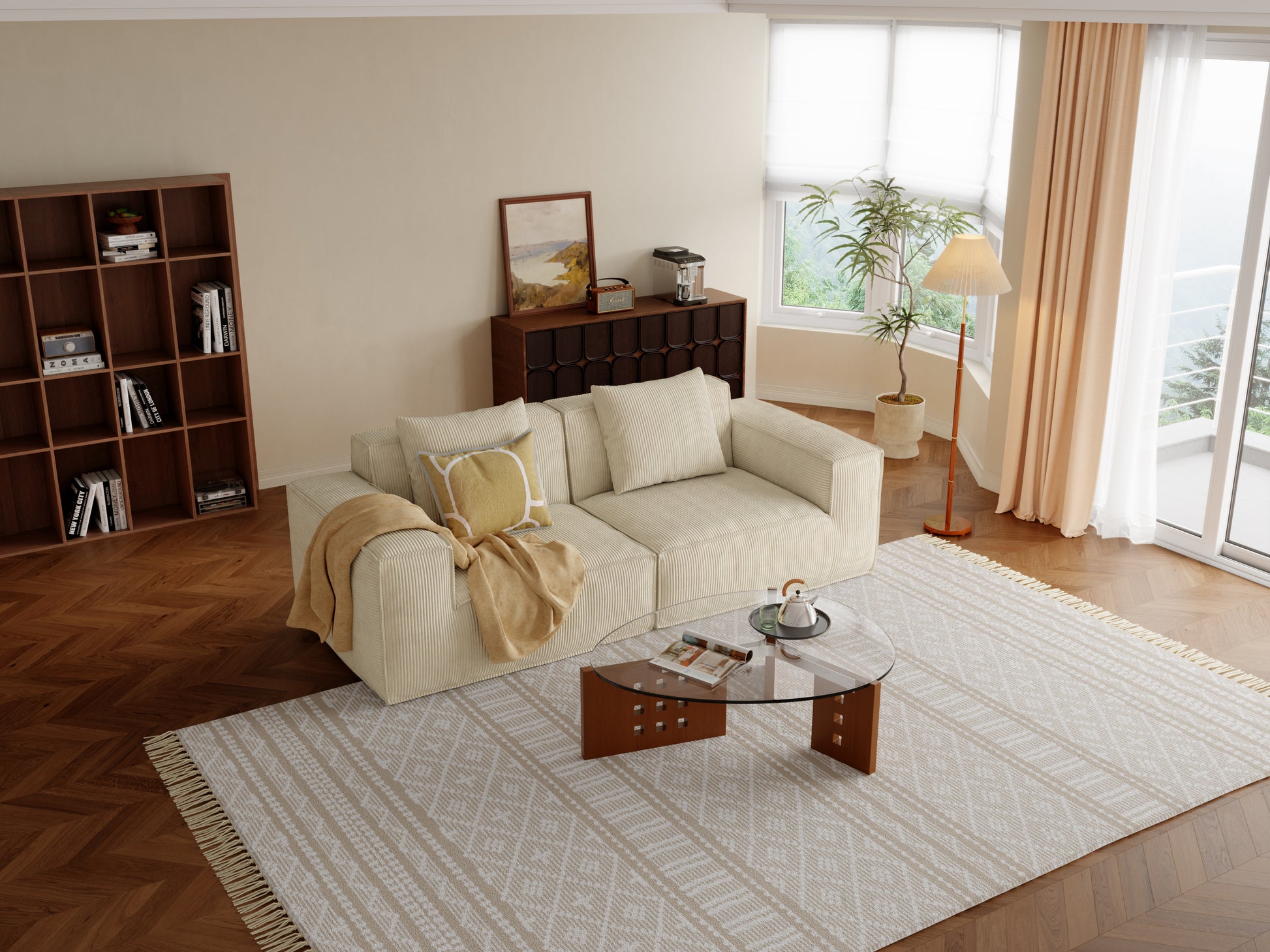 modular sofa can be converted into an oversized sofa bed Free conversion sofa set flexible configuration, soft corduroy cloud velvet fabric two person combination-cream