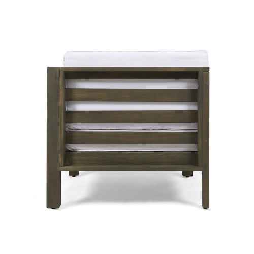 - Each item in this chic assemblage supports you from below with a solid, slatted acacia wood frame and boasts thick outdoor cushions comfortable enough to socialize on all night long.